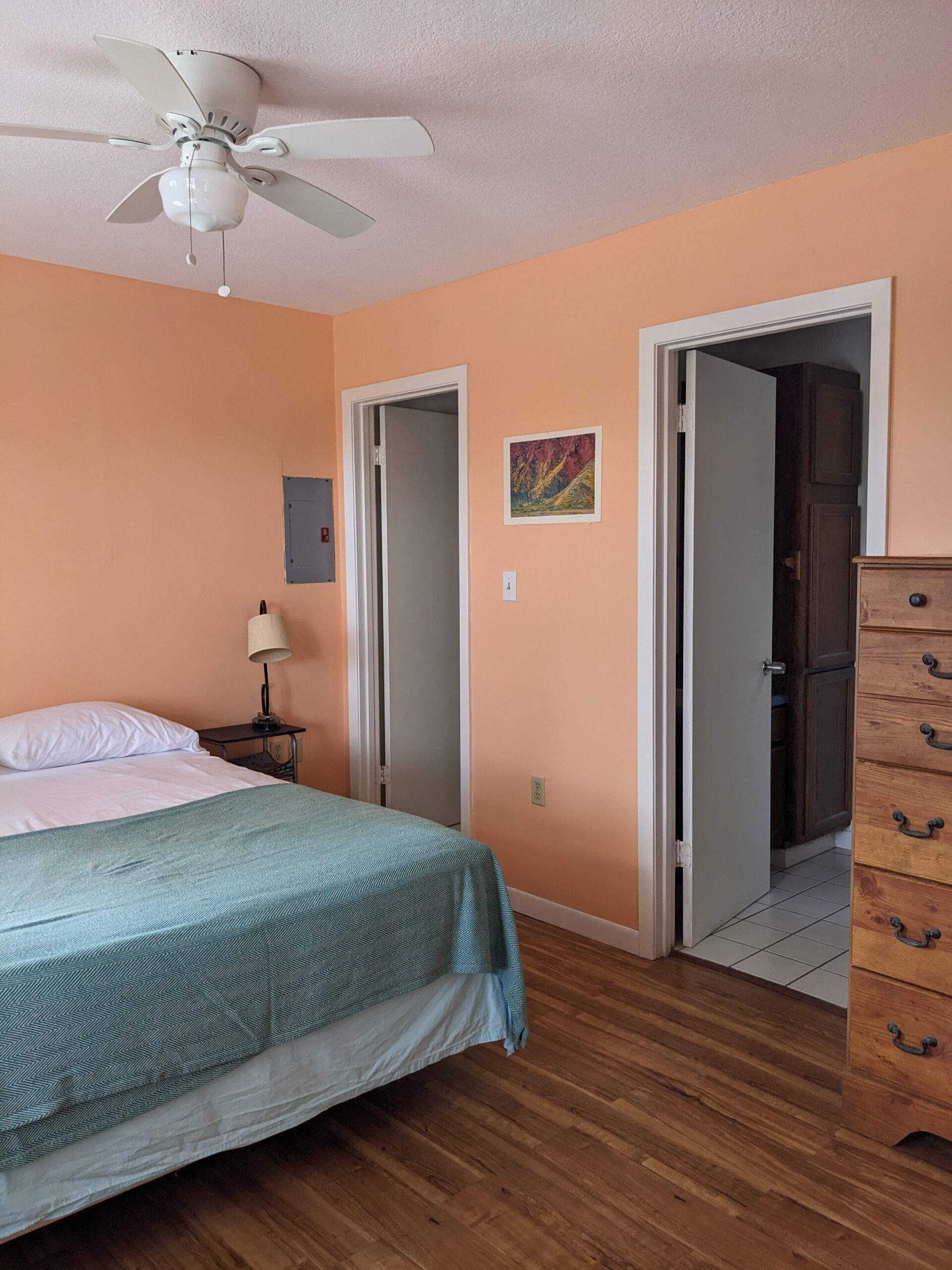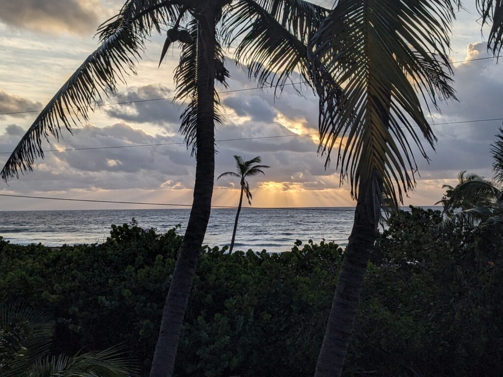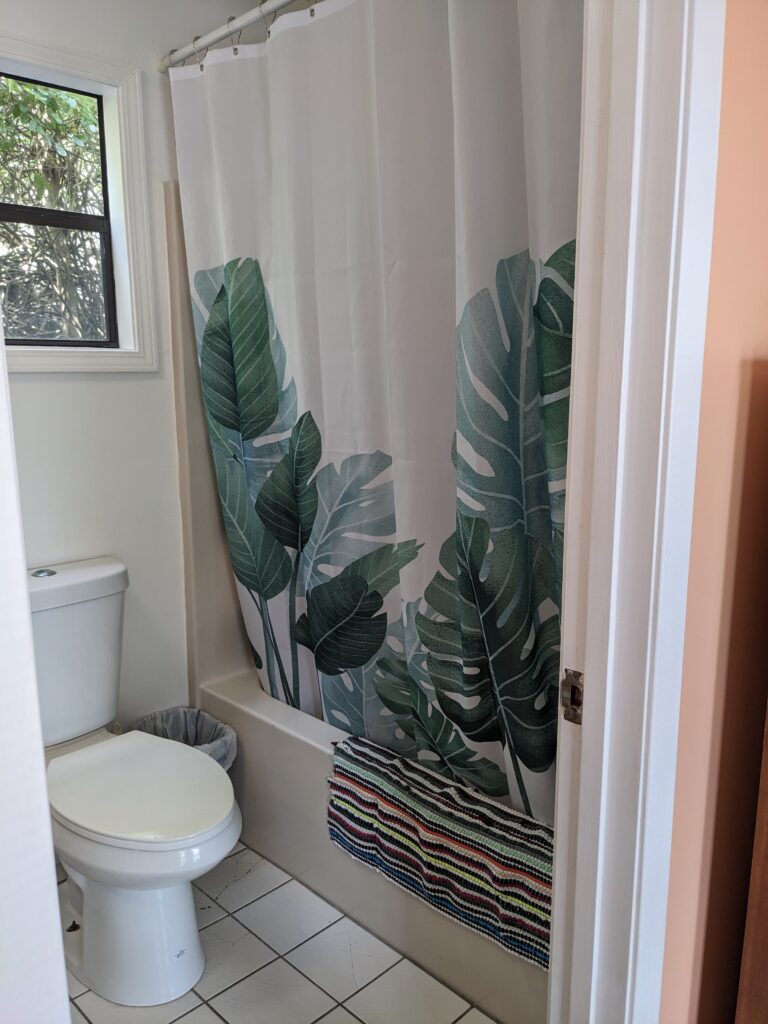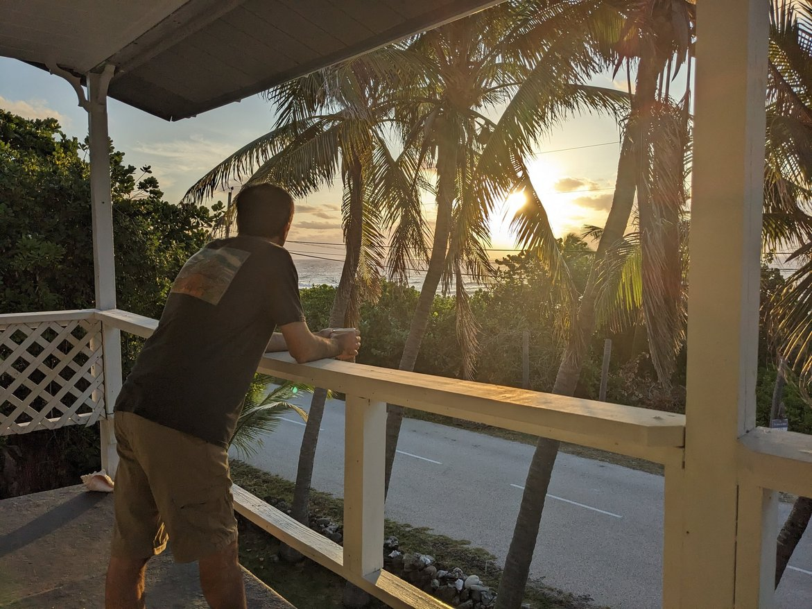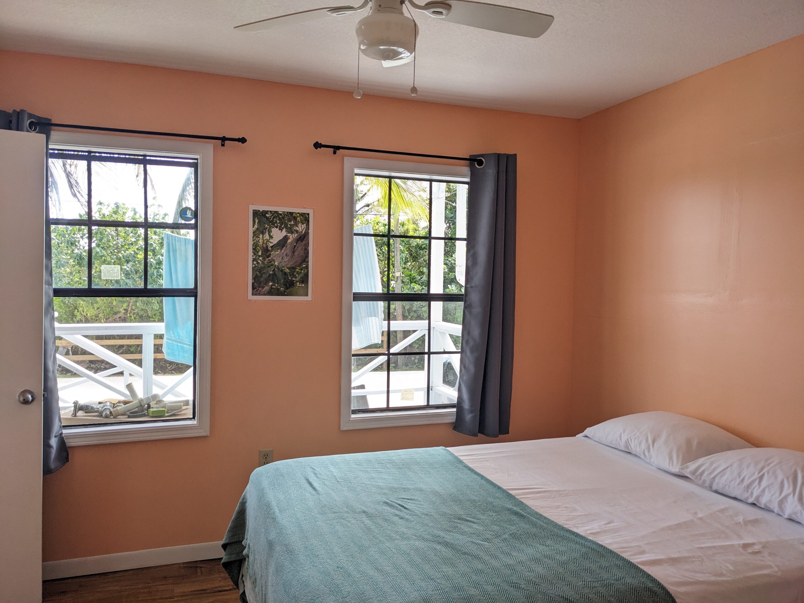 It’s nothing fancy, but it’s comfortable and has everything you need including a fully equipped kitchen (fridge, stove, blender, coffee maker, microwave, pots, dishes, etc.), sheets, towels and a clothes washer out back. No TV and no internet means… a real vacation!