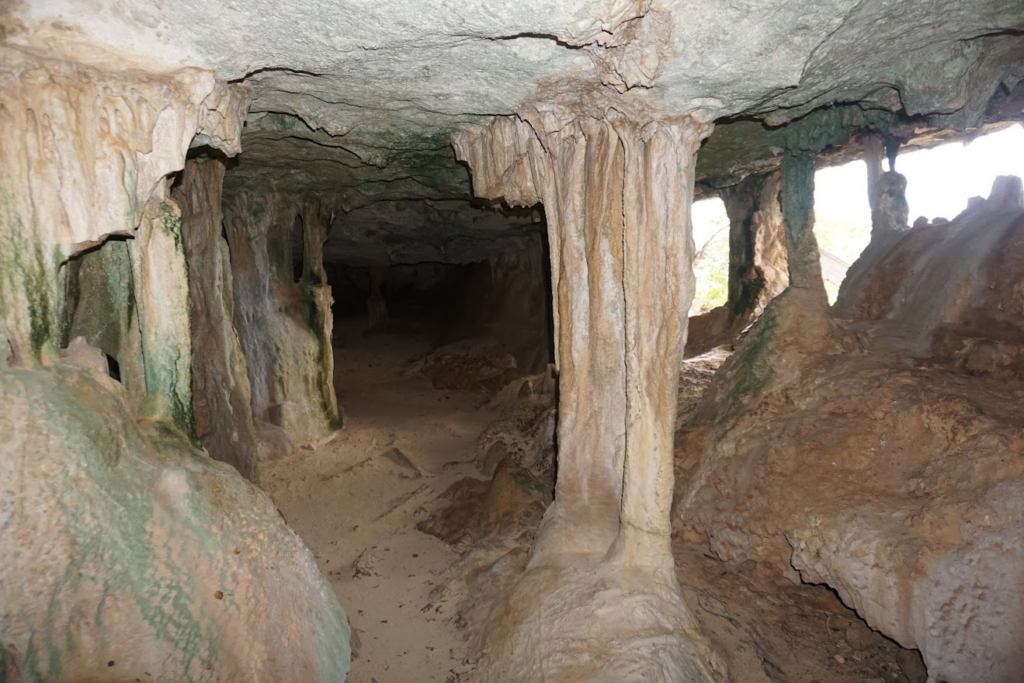The carbonate geology has resulted in numerous caves around the island. There are several fairly accessible caves and dozens, if not hundreds, more awaiting discovery in the undeveloped forests and woodlands for those with extra ambition to venture into the bush. The caves on the islands have been used historically by residents as hurricane shelters and undoubtedly were used as secret treasure hideaways by pirates. Today, the caves are home to several species of bats and nesting birds including owls and tropicbirds. Columns, stalactites, stalagmites, and flowstones decorate the interior of the caves; be sure to bring your headlamp!