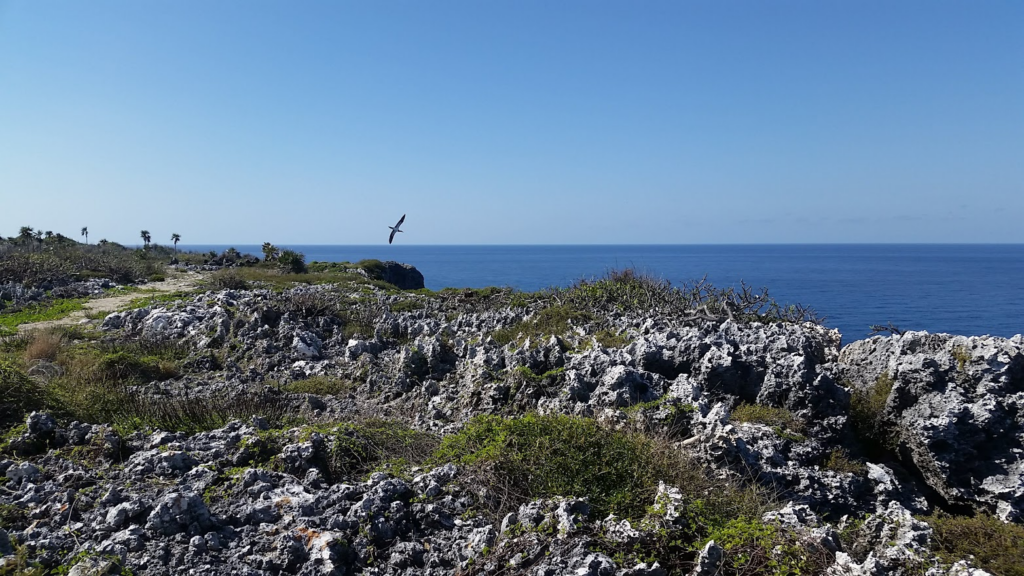 The Cayman Islands rival the Galapagos Islands relative to the number of endemic species (i.e., those found nowhere else on Earth). Cayman Brac hosts several unique wildlife species including the Cayman parrot, the Sister Islands rock iguana, and red-legged thrush as well as numerous species of unique plants including the banana orchid, silver thatch palm, Platt’s cactus, and several others. Many of the endemic species are globally imperiled due to their small size, restricted geographic range, and encroaching threats from unmitigated development and land uses. Brown booby birds nest along the edge of the bluff. They are magnificent birds but unfortunately their numbers have declined to critical levels due to predation by introduced species including feral cats, rats, and green iguanas. See our Brown Booby page or click here for more information on these special birds.
